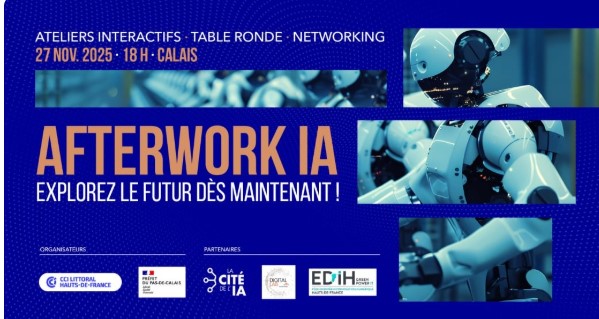 Pour vous permettre de découvrir le potentiel de l’IA de manière concrète, la CCI Littoral Hauts-de-France et la Sous-Préfecture de Calais, en collaboration avec la Cité de l’IA et le Digital Lab ArcelorMittal, vous invitent à une soirée inédite, dédiée à l’exploration, à l’expérimentation et à l’inspiration.